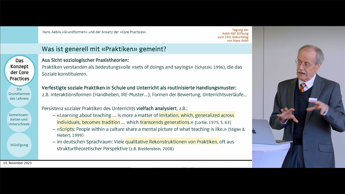 Parallelen zu Hans Aeblis «Grundformen» liegen auf der Hand. Nicht nur können manche von Aeblis Grundformen als Core Practices verstanden werden. Darüber hinaus zielen beide Ansätze darauf ab, wirkungsvolles berufliches Handeln und das Verständnis zugrundeliegender Prinzipien in einem sich gegenseitig anreichernden und iterativen Prozess zu entwickeln.